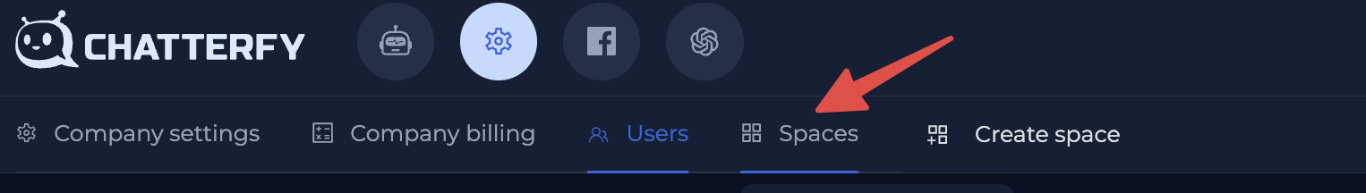 Наведите на "Spaces" и выберите нужное пространство