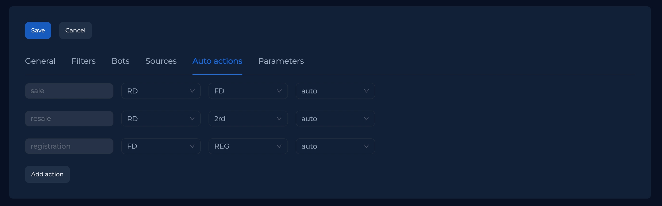 Вы можете добавлять бесконечное множество действий, нажав на кнопку "Add action"